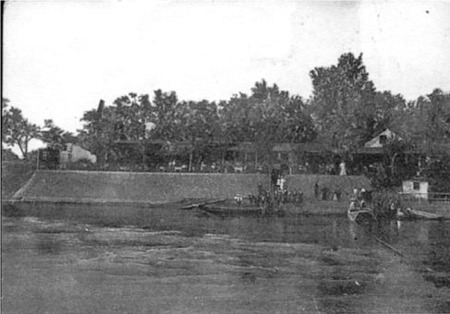 Hier sehen sie noch keine Wasserstation. Diese wurde erst 1921 in Planung gegeben. Am rechten Bildrand sehen Sie die sog. Überfuhr, wo mit Booten Gäste und Waren ins heutige Angelibad gebracht wurden. Heute führt an dieser Stelle der "Birnersteg" über die Alte Donau. |