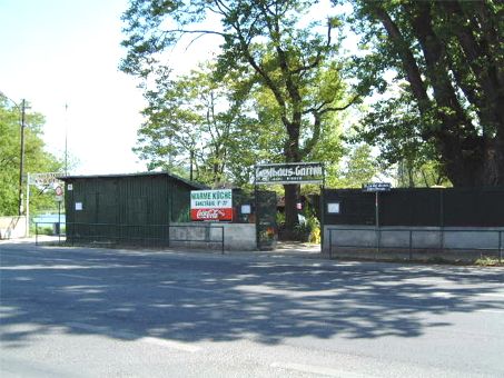 Unser Gastgarten von der Straße aus gesehen. Links gehts runter zum "Birnersteg". Dort befand sich das ehemalige "Birnerbad", direkt neben der Uferstraße.